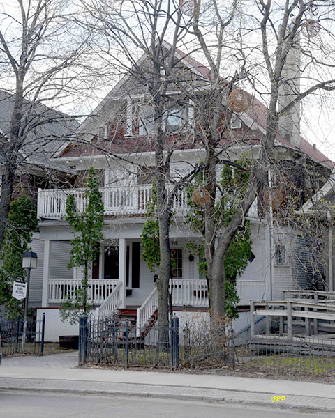 This two-storey wood frame house on Broadway in Winnipeg was built in 1908 by contractor and brickmaker Samuel Hector Foster (1868-?). Occupants included Jeffery Ellery Hansford (1914 to 1932) and James Michael Mercury (1937 to 1952).