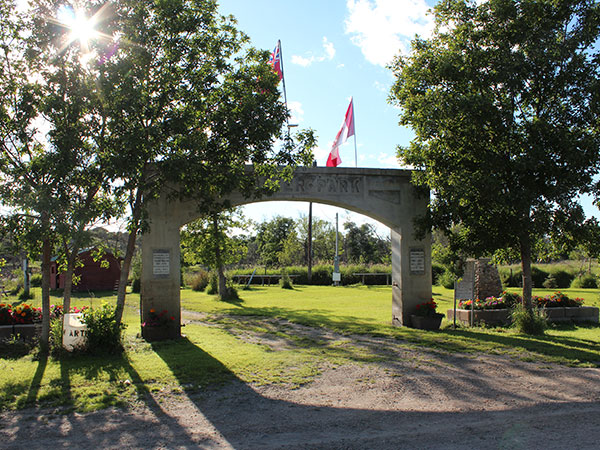In July 1929, a memorial arch at the park was dedicated at the annual picnic. Three years later, a log cabin, built by H. Fraser on 4-2-27 west of the Principal Meridian in 1885, was donated to the Association in 1932 by Wilfred Reid Cosgrove as a memento of pioneer days. Near the cabin and arch is a monument erected by the Rural Municipality of Arthur commemorating the Canadian centennial year in 1967.