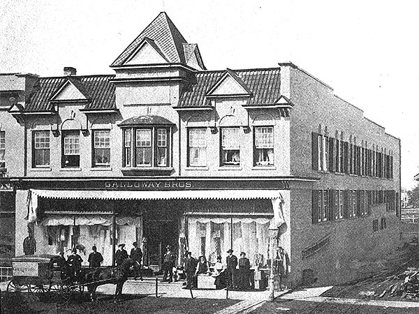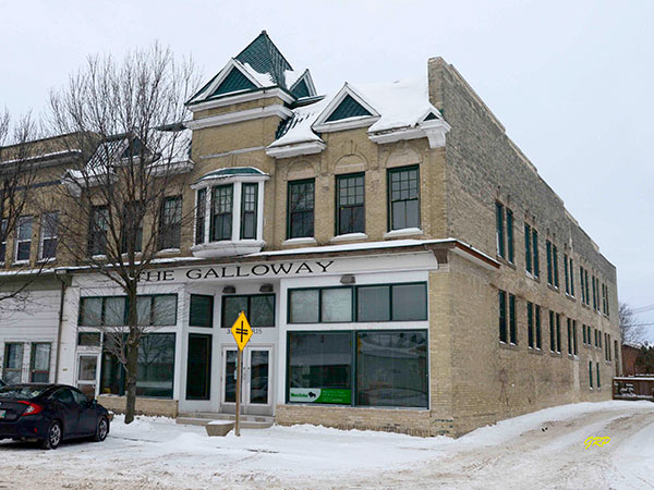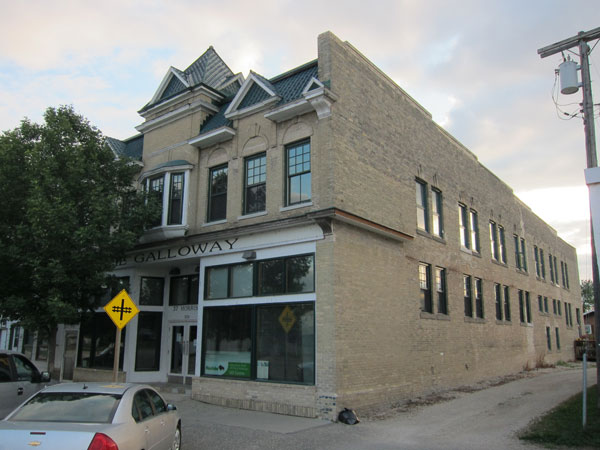 A two-storey brick building on Morris Street North in Gladstone, in the Municipality of WestLake-Gladstone, was constructed in 1902 on a design by Toronto-based architect George Wallace Gouinlock (1861-1932) at a cost of about $15,000. One of the earliest department stores outside a major urban centre in Manitoba, it continued the retail business of brothers Roper Galloway and William Galloway that had been established in 1881.
