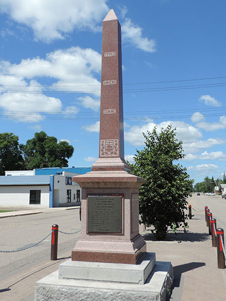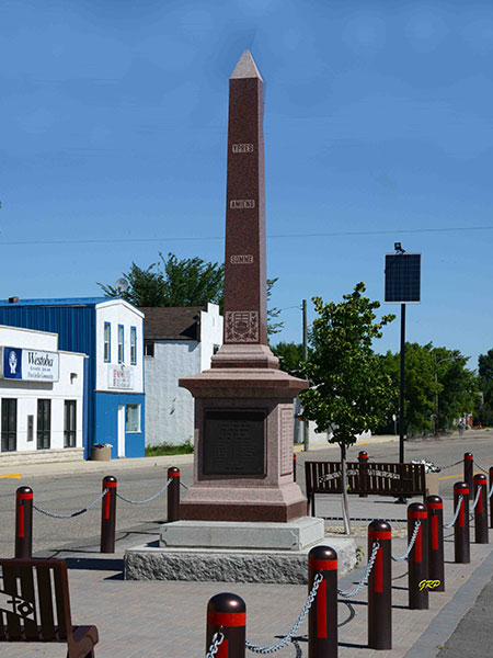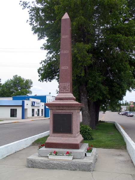 A monument in Glenboro, in the Municipality of Glenboro-South Cypress, commemorates soldiers from the local area killed during military service. It was unveiled at a ceremony attended by Lieutenant Governor James Aikins on 1 June 1921.