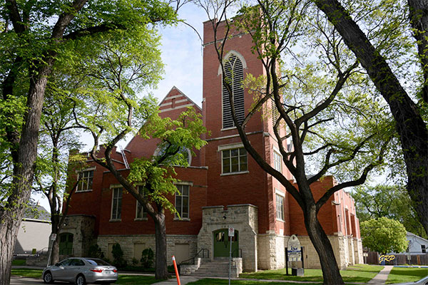This Winnipeg church began as the Elmwood Mission which gathered at Martin School in November 1903 under the leadership of Thomas B. Kilpatrick, a professor at Manitoba College. The Elmwood Presbyterian Church was formed on 16 March 1904 with 19 charter members and Reverend Daniel Norman McLachlan (first appointed as a missionary) formally assuming Pastor duties in October 1904. Arising from the need for greater capacity, scouting began for a new church building, and a new site was identified on the west side of Kelvin Road (now Henderson Highway), just north of Riverton Avenue. A wooden frame structure was erected there in 1904 and expanded in 1907.