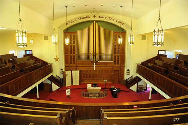 In 1914, the second phase, consisting of the expansion of the foundation with twin wings on the east and west sides, measuring 14 feet by 56 feet, was designed by Teeter and built by contractor Worswick at a cost of about $3,200. An $8,500 pipe organ was also installed at that time. During the First World War, 33 of the 273 congregants who served in the military were killed.