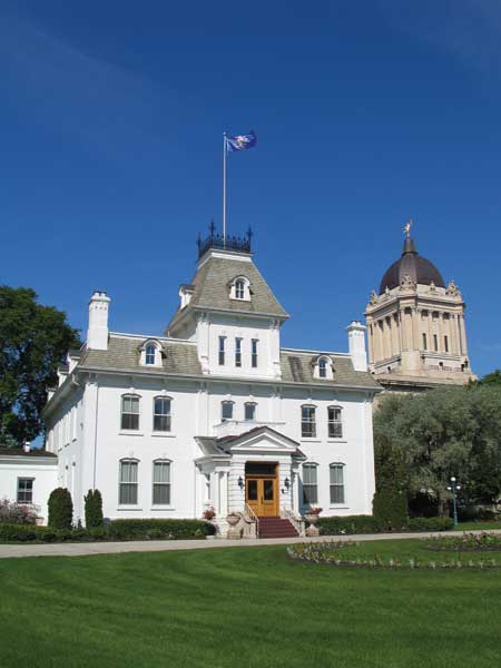Government House, situated at 10 Kennedy Street adjacent to the Legislative Building, was constructed by local builder Joseph Edmond Gelley under the supervision of architect David Smith starting in September 1882. It was completed in under a year. James Cox Aikins was the first Lieutenant-Governor to take up residence, in September 1883. It was transferred to Manitoba’s jurisdiction in 1885, symbolizing the completion of Manitoba’s parliamentary political structure.