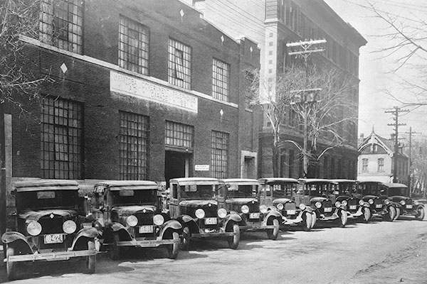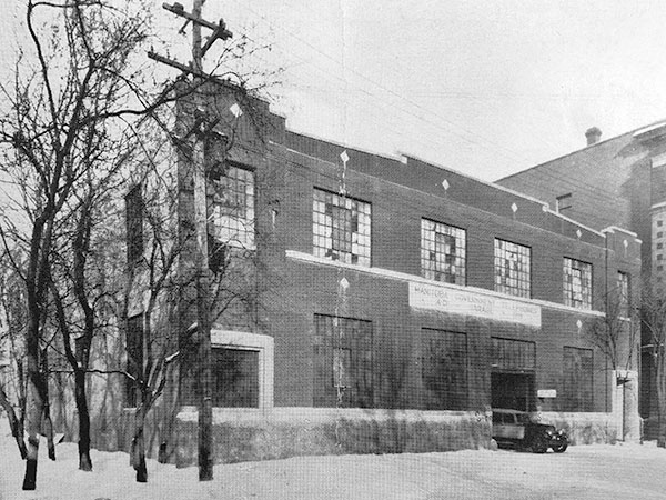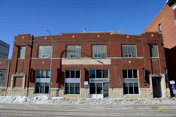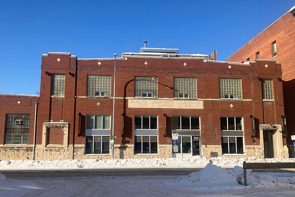 This two-storey brick and stone building on Hargrave Street in Winnipeg was designed by local architect John Hamilton Gordon Russell and built in 1919 by contractor Sveinn Brynjolfsson for the Manitoba Government Telephones as their service and maintenance vehicle garage.
