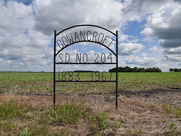 The Gowancroft School District was established formally about 1884 and a schoolhouse operated at SW24-3-11 west of the Principal Meridian near the intersection of highways 3 and 34, east of Pilot Mound in what is now the Municipality of Louise. It closed in January 1967 when it was consolidated with Pilot Mound School No. 105. A sign commemorates the school at its former site.