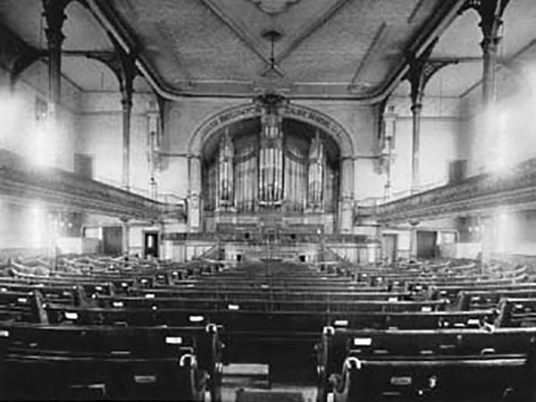 In 1883, a Methodist (later United) church was designed by Winnipeg architect James Chisholm and built at the corner of Ellice Avenue and Notre Dame Avenue. The church closed in June 1955 and was demolished in 1957. The site is now a surface parking lot.