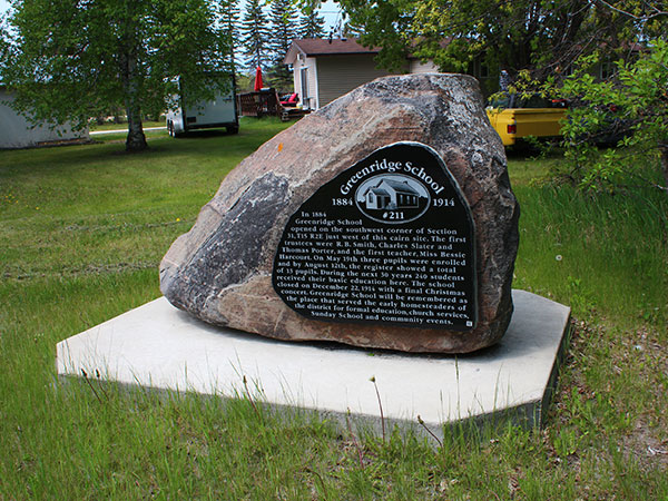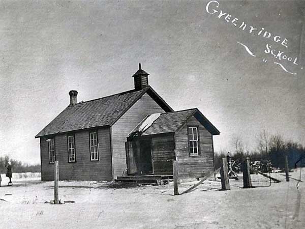The Greenridge School District was established in 1884, with a schoolhouse erected on the west half of 31-15-2 east of the Principal Meridian, in the Rural Municipality of Rockwood. Miss Bessie Harcourt was the first teacher, for a class of 13 students. Some 240 students had attended by the time the school was disbanded in December 1914. At that time, remaining students went to Gunton Consolidated School No. 1507 or Balmoral Consolidated School No. 1710. The former school building was painted red and, for years, was used as a local landmark and bus stop.