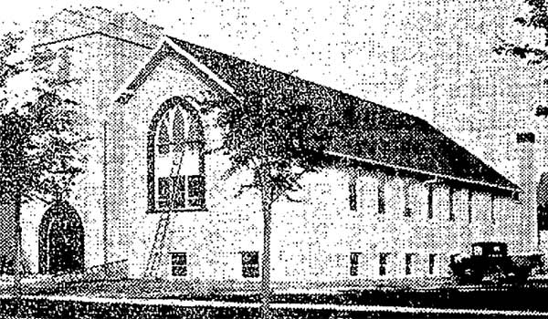 In 1915, a brick building was constructed at this site by contractor George F. Cole for the congregation of West End Methodist Church. Previously, they had been meeting in a building on Portage Avenue near Stiles Street but had outgrown the space. The new building was designed for a capacity of 400 to 500 people and cost an estimated $7,000. The cornerstone was laid at a ceremony on 14 July 1915 and the first service was held in September. Following the 1925 union of Methodist, Presbyterian, and Congregational faiths in Canada, it became Greenwood United Church. The church was heavily remodelled in 1929, with the addition of permit pews, arched windows, and a bell tower with a new Gothic entrance.