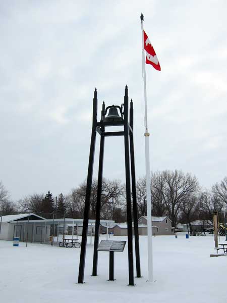 Gretna Peace Bell on the site of the third Gretna School (January 2012)