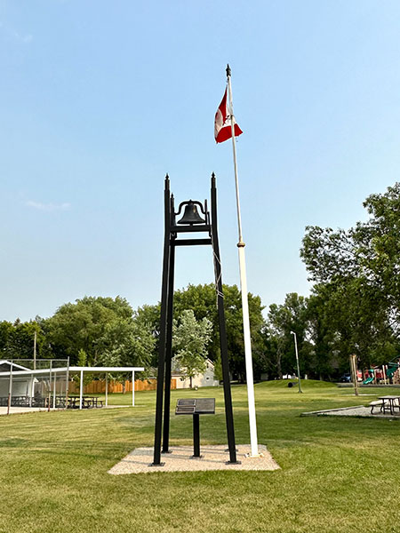 Gretna Peace Bell on the site of the third Gretna School (July 2023)