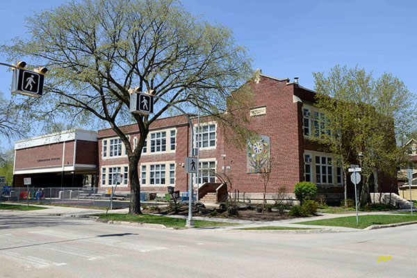 Grosvenor School opened in October 1922, relieving the overcrowded Kelvin High School, La Verendrye School, and River Heights School. Situated on the north side of Grosvenor Avenue, between Wilton and Guelph streets, eight of its twelve classrooms were occupied immediately upon opening. It was designed by local architect James Bertram Mitchell and built by the Sutherland Construction Company. An expansion in 1959 was designed by architect William Isaac “Bill” Enns.