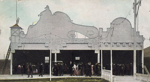 Postcard view of Edisonia (a display of electrical equipment) and rifle range at Happyland (circa 1910)