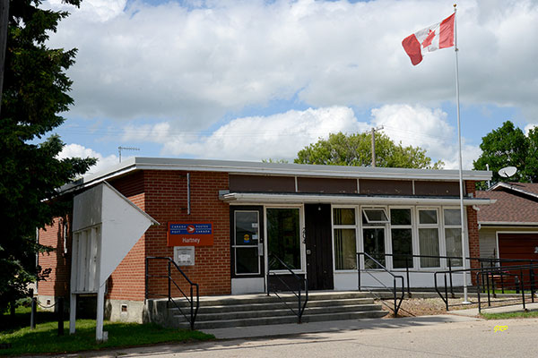 This brick building on Spencer Street in Hartney was constructed in 1960 as a post office, for which it is still in use as of 2020.