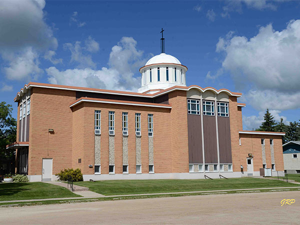 This Ukrainian Catholic church on Sixth Street in Beausejour was designed by architect Victor Deneka and built in 1964 by contractor Steve Zulak, replacing an earlier church from 1914. Its iconostatis was created by Igor Suhacev, stained glass was by Roman Kowal, and stations of the cross were by artist Colsan.