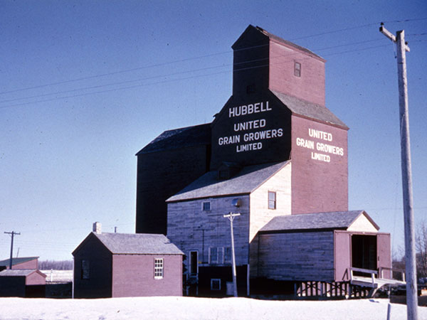 A 30,000-bushel wooden grain elevator at the Hubbell Siding of the CNR Miami Subdivision, in the Municipality of Lorne, was built in 1938 by the Canada West Grain Company. Sold to United Grain Growers in July 1948, a crib annex was built beside it in 1953, increasing its total capacity to 60,000 bushels. It was closed on 31 July 1971 and demolished later that year.