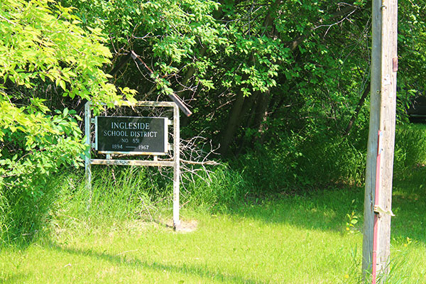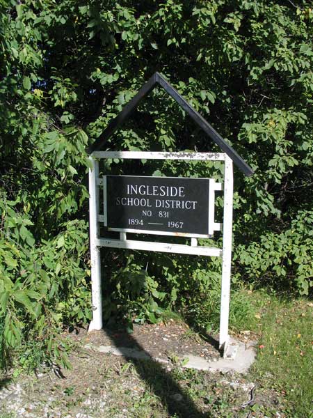 The Ingleside School District was established formally in November 1894. A building was constructed in the northwest quarter of 22-10-4 west of the Principal Meridian, in the Rural Municipality of Portage la Prairie. In 1899, the building was moved to SW28-10-4W. The school closed in April 1967 and was consolidated into Oakville School. The building was later sold to the Grand Hutterite Colony. A commemorative sign remains at the school site.