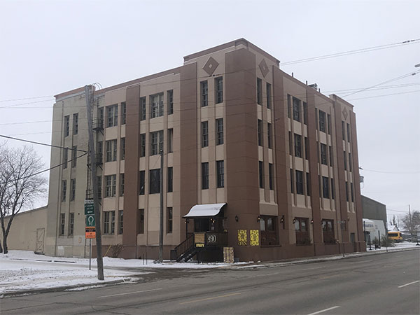 This four-storey building on Des Meurons Street in the St. Boniface area of Winnipeg was constructed in 1919 by Carter-Halls-Aldinger as a warehouse for the Marshall-Wells Company, a hardware retailer. Within a year, however, it was sold to International Laboratories Limited, a manufacturer of paints and varnishes, and later of soap.