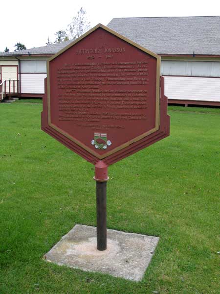 Born at Baki, Iceland, this publisher and entrepreneur became a prominent leader in the Canadian Icelandic community. As immigrant agent he brought from Iceland more than a thousand people driven from their homeland by a volcanic eruption. They settled in 1876 on the west shore of Lake Winnipeg. Homesteading near Riverton, he was instrumental in establishing the unique laws and constitution of the Republic of New Iceland. This monument in Gimli, by the Gimli Dance Pavilion, was erected by the Historic Sites Advisory Board of Manitoba.