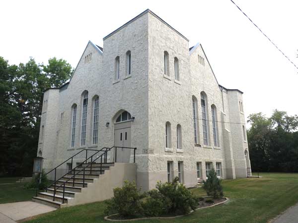 The first church at this location in Russell was constructed between 1888 and 1889 under the guidance of Presbyterian missionary James Lang. As of 1890, the building was also used for Methodist church services. The present structure, also Presbyterian, dates from 1911. It became a Union Church in 1922, and a United Church following the 1925 unification of the Presbyterian, Methodist, and Congregationalist faiths in Canada. Although made of bricks, the building’s exterior was covered with plaster in the 1950s to address grouting problems.