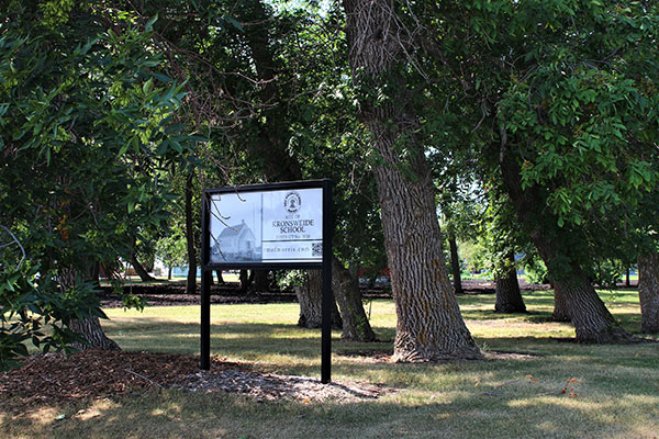 The Kronsweide School District was formally established in August 1899 and a school building operated in the northeast corner of the southeast quarter of 23-4-2 west of the Principal Meridian, in the Rural Municipality of Morris. The district, which became part of the Morris Macdonald School Division, was dissolved in 1968 and henceforth students from this area went to Lowe Farm Consolidated School No. 2377. In September 2015, a sign commemorating the school was erected at the site.