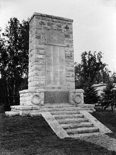 A monument at Camp Morton, in the Rural Municipality of Gimli, was moved from the former site of the Lakeside Fresh Air Camp for Children. It had been donated by the Union Bank of Canada in memory of its employees killed while serving in Canadian forces during the First World War. The monument has originally be unveiled in July 1922 by Lieutenant-Governor J. A. M. Aikins.