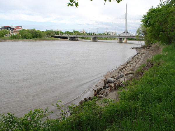 This site along the Red River in Winnipeg was formerly an active part of local marine industry, with the shore used as a shipyard. In 1910, the Eli Sand Company laid down the self-propelled SS Rosamond Billett at this location, with additional vessels following in the coming years. The following year, the newly-formed Lake Winnipeg Shipping Company (LWSC) built a lengthy dock and, two years later, expanded it by 475 feet. The LWSC used its fleet of tugs, barges, and other steamships to haul a wide range of natural resources from sites around Lake Winnipeg via the newly-opened St. Andrews Lock. The proximity of these docks to rail lines, local building construction, and industrial and commercial development proved effective. Commercial activity at this location ceased in little more than a decade. All that remains of the former dock are wooden piers that are visible only when water levels are low.