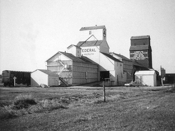 A wooden grain elevator at Langruth, on the CNR Oakland Subdivision, was built around 1918 by the McMillan Grain Company. It was owned successively by the Spencer Grain Company (1920-1929), Western Grain Company (1929-1932), and Federal Grain Company (1932-1972). In 1972, it was sold to Manitoba Pool Elevators, becoming its B elevator at this point. The last record of its operation is from 1975 after which its fate is unknown. No vestige remains at the site.