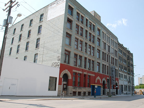 This five-storey brick and stone warehouse on Ross Avenue in Winnipeg was designed by local architect James Henry Cadham and built in 1905 by John Alexander Girvin and William James Hodgins for the Leadlay Manufacturing Company. In September 2019, it became a municipally-designated historic building.