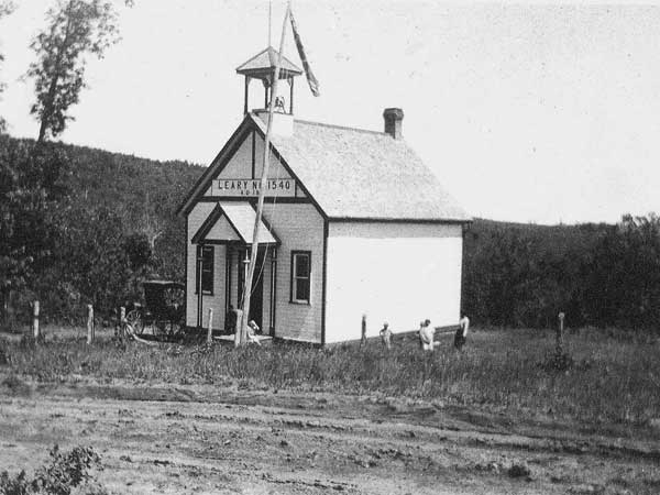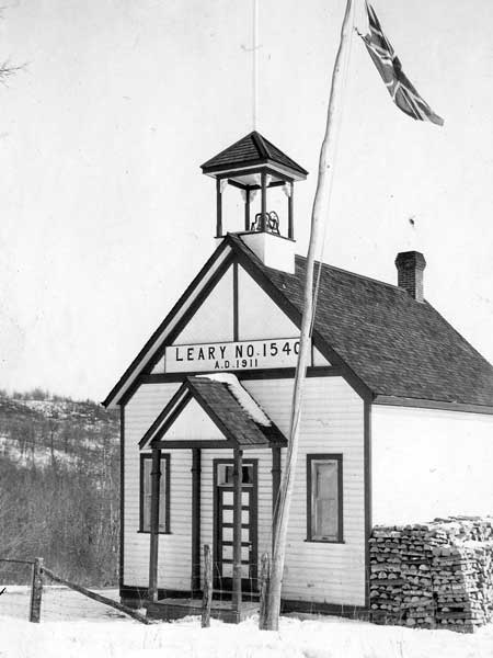 The Leary School District was established in May 1910. The following year, a school building was constructed at NW13-6-8W in what is now the Municipality of Lorne. The school was named after the Leary family, who founded the nearby Leary Brickworks. It was a union school, drawing its students from three adjoining municipalities: the RM of Lorne, RM of Thompson, and RM of Dufferin. The district was dissolved in 1958 and the school building was later demolished.