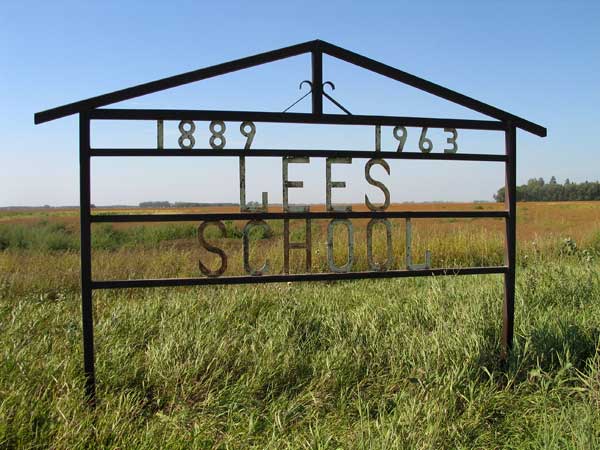 This monument in the Municipality of Norfolk Treherne commemorates Lees School, which was established in a building on the southwest quarter of 32-7-8 west of the Principal Meridian, in May 1889. It closed in January 1963 with the remaining students going to Rathwell Consolidated School No. 578 or Notre Dame de Lourdes Consolidated School No. 2390.