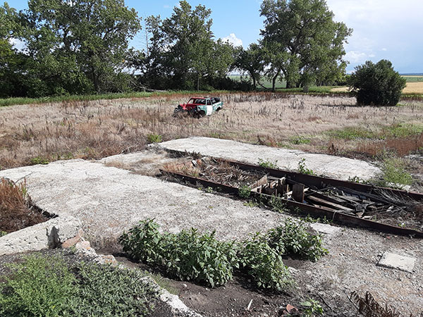 A wooden grain elevator at the railway siding of Liege, on the now-abandoned CNR Wakopa Subdivision in what is now the Municipality of Deloraine-Winchester, was built in 1927 by the Matheson Lindsay Company, sold to the Province Elevator Company in 1928, and re-sold to United Grain Growers in 1932. It closed due to railway abandonment in July 1961, while still full of grain, but remained standing at the site as recently as 1984. Its concrete foundation and metal pit were still present in mid-August 2020 but were removed at that time.