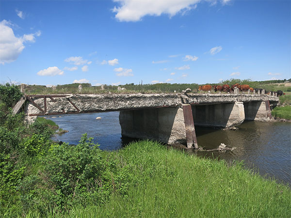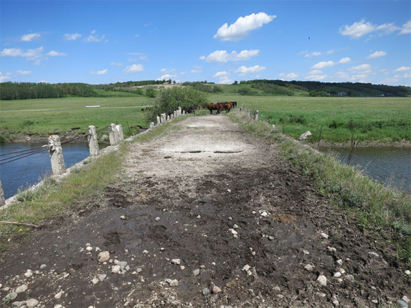 Abandoned concrete beam bridge over the Little Saskatchewan River (June 2015)