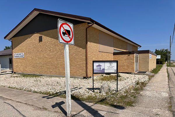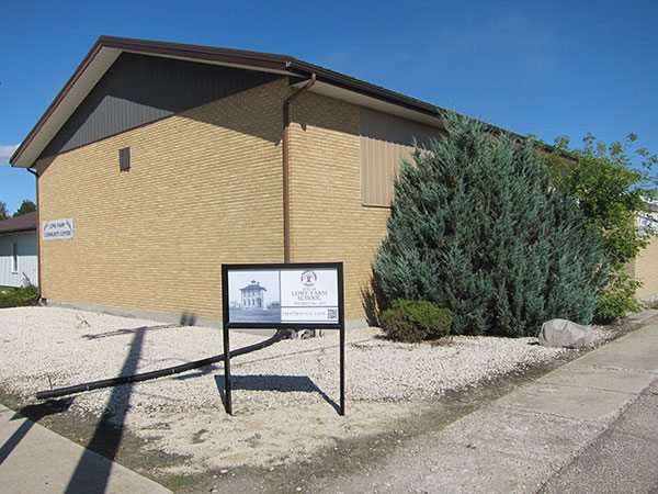 The Lowe Farm School District was established formally in June 1899 and a one-room school building was erected in the village of Lowe Farm in the Rural Municipality of Morris. It was replaced in 1913 by a two-storey structure made of locally manufactured concrete blocks. Crowding caused by the introduction of a high school program necessitated the addition of a small building, in 1926. Another building was built east of the concrete-block school in 1936, followed three years later by a two-roomed building made of red bricks. A four-classroom brick veneer building was added to the site in 1955, including the school’s first auditorium. In the summer of 1956, the concrete block building was sold at auction and dismantled. It became the Lowe Farm Consolidated School No. 2377 when, in July 1959, it merged with St. Peter’s School No. 1031, Heabert School No. 1282, and Neufeld School No. 1580, later becoming part of the Morris-Macdonald School Division. The present school building was constructed in 1961 on a different site from the original structure. In September 2015, a sign commemorating the school was erected at the original site.