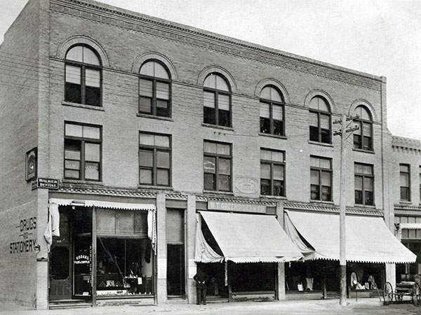This three-storey brick building along Main Street in Dauphin was constructed in 1906 by local farmer and businessman Andrew Malcolm (1842-1920) and his son Thomas Malcolm. A fire on 30 December 1912 destroyed much of the building’s interior, with the facade of only the top two floors surviving.
