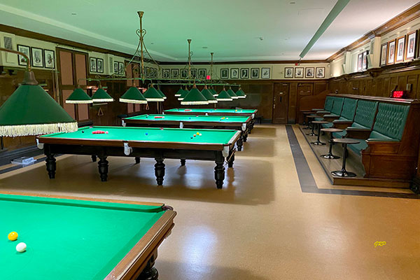 The club's sporting lounge, a Victorian-era billiard room with snooker tables that are over 100 years old, has portraits of presidents back to 1874.