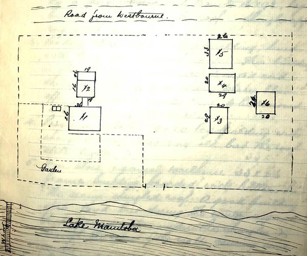 Manitoba House was a fur-trading post established on the western shore of Lake Manitoba, south of The Narrows, in the late 1810s or early 1820s. Located near today’s community of Kinosota, in the Rural Municipality of Alonsa, it was one of the first inland posts of the Hudson’s Bay Company. It was a modest facility. A map at the Archives of Manitoba shows that, in 1891, there were six buildings at the site but no palisade around them. A 1½-story log building and attached kitchen was the home of the trader, surrounded by a garden, and four other outbuildings were a trading store, provision store, fur store and general warehouse, and flour store. Nearby was a road from the new community of Westbourne to the south and, on Lake Manitoba, a wharf for people arriving by water. On 21 August 1871, Treaty No. 2 was signed here after being negotiated (along with Treaty No. 1) at Lower Fort Garry.