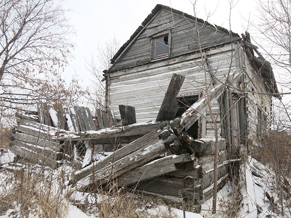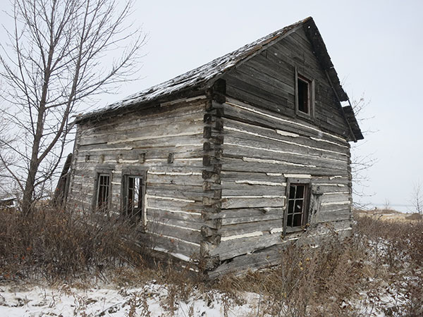 Remains of a Manitoba House replica building from the 1970s (November 2018)