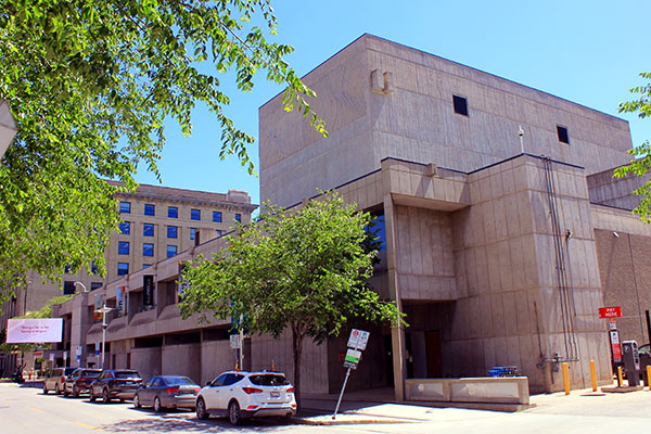 The Manitoba Theatre Centre on Market Avenue in Winnipeg was designed by the Number TEN Architectural Group and constructed between 1969 and 1970 as a project marking the centenary of Manitoba's entry into Canadian Confederation.