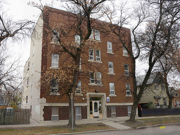 This three-storey brick and stone block on Toronto Street in Winnipeg, measuring 47 feet by 87 feet, was designed by local architect David A. Abramovitch. Construction in 1914 was begun by M. Malitosky. It was finished in 1917 by the Standard Construction Company. The block contained 22 apartments in its original configuration.