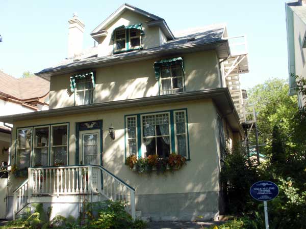 This two-storey wood frame house in Winnipeg was built in 1911 and occupied by Nelly Letitia McClung from 1911 to 1914. It was recognized by a Heritage Winnipeg Conservation Award (1989) and a plaque in the Memorable Manitobans: The Homes program (2010).