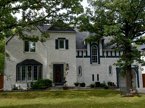 This two-storey brick and stucco house on Lamont Boulevard in the Tuxedo area of Winnipeg, measuring 42 feet by 50 feet, was designed by local architect Arthur Edward Cubbidge and built in 1929 by the Sparrow Brothers for owner John S. McMahon at a cost of about $14,000. It was later owned for many years by Joseph K. May, President of Scott-Bathgate Limited known for the Nutty Club brands.