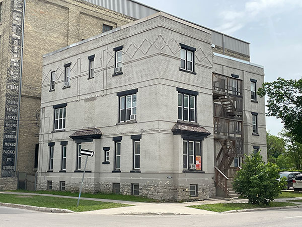 The Manitoba Medical College, established in 1883 as the first such school west of the Great Lakes, occupied this two-storey brick building designed by architect Victor Stewart or possibly by Neal Dow Barker. The building was constructed between 1884 and early 1885 on McDermot Avenue in Winnipeg. Later expanded to its present three-storey configuration, in 1906 the College moved to new facilities at 750 Bannatyne Avenue. In 1908, the building was renovated into a ten-suite apartment block called St. Regis Court.