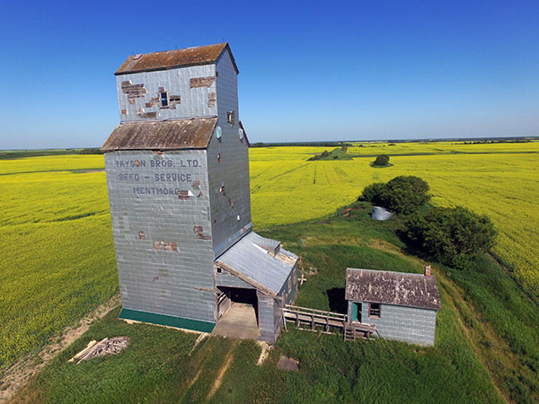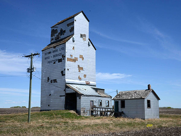 A wooden grain elevator at Mentmore, on the CNR Rapid City Subdivision in the Municipality of North Cypress-Langford, was built in 1927 and operated by the Mentmore Co-operative Elevator Association as part of the Manitoba Pool Elevators network. A new crib annex with a capacity of 57,200 bushels was built between 1957 and 1959. The facility closed in December 1978 as the adjacent railway line was abandoned. The tracks were removed in June 1979. In the fall of 1980, the annex was moved to Franklin and the elevator was sold to the Drayson family who used it as storage for a seed business.