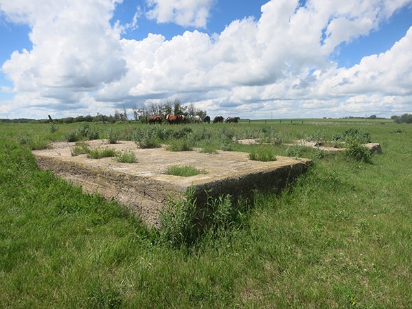 Concrete foundation for the former Manitoba Pool grain elevator at Moline (June 2016)
