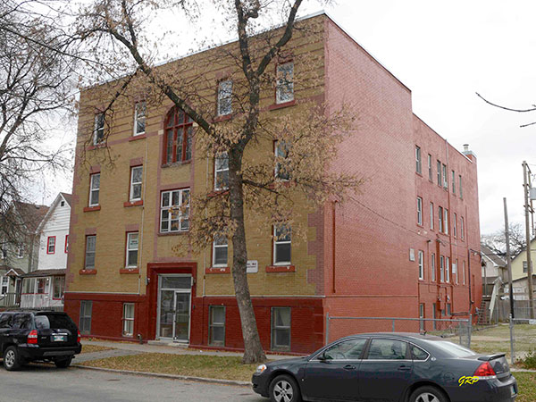 Construction of this three-storey brick block on Toronto Street in Winnipeg, designed by architect David A. Abramovitch and measuring 50 feet by 86 feet, is believed to have begun in 1914 by investor J. M. Kamen. Its completion was interrupted by the First World War. The structure stood vacant until 1922 when it was completed by contractor Joseph Johnson. The building contained 23 apartments in its original configuration. It has 22 apartments today.