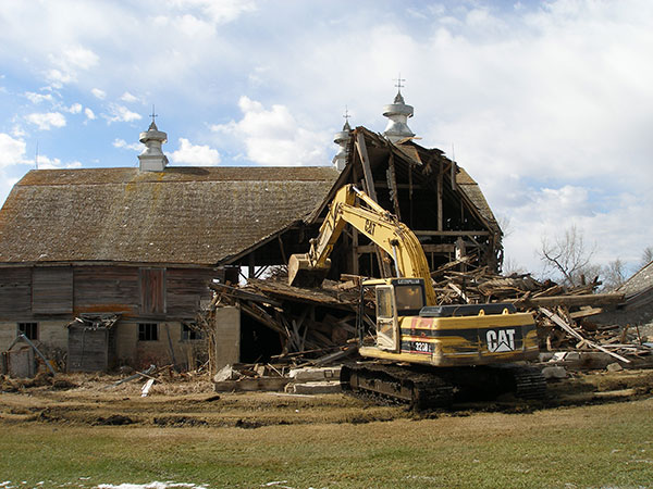 Motheral Barn undergoing demolition (March 2010)