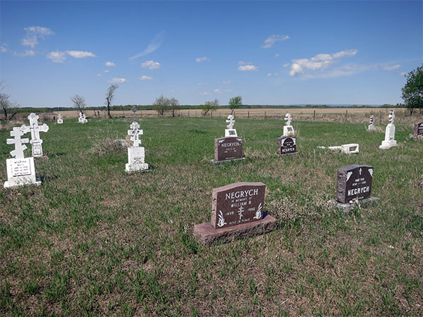 The first burial in this cemetery in the Municipality of Gilbert Plains occurred in 1909. Several members of the Negrych family are buried here. The concrete foundation of a former Ukrainian Orthodox church at the site was present at the time of a 2021 visit.