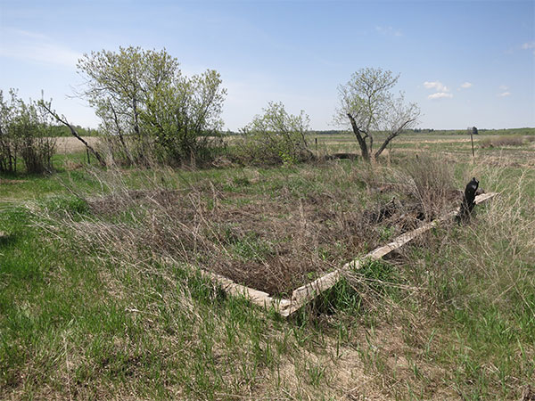 Concrete foundation of Sts. Peter and Paul Ukrainian Orthodox Church at the Negrych Cemetery (May 2014)