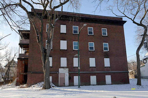 This three-storey brick block on Alfred Avenue in Winnipeg, measuring 60 feet by 88 feet, was designed by local architect David A. Abramovitch and built in 1913 by owner A. Jacobs at a cost of about $70,000. The building contains 23 apartments in its original configuration.