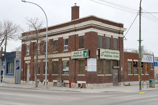 This two-storey, red-brown brick and Tyndall stone trimmed building at the corner of Main Street and Selkirk Avenue in Winnipeg, measuring 25 feet by 65 feet, was designed by local architect William Wallace Blair. It was built in 1905 by the construction firm of J. McDiarmid and Company at a cost of $3,500 as a branch of the Northern Bank (later known as Northern Crown Bank). It originally featured a banking hall on the main floor while the second floor housed offices accessible from a door along Selkirk Avenue.